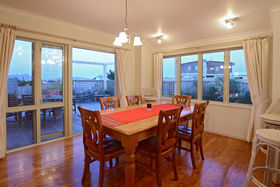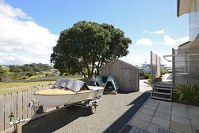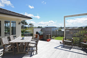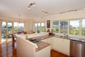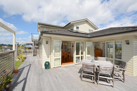 Near new home on the hill overlooking the estuary and the beach and sea views toward the Hen Is. Solidly constructed of low maintenance materials including double glazing and high spec insulation. Modern yet traditional in feel with timeless design features that really work to make this home so welcoming. Open and airy entertaining area with wraparound timber decks, large kitchen with granite benchtops and blonde cabinetry and glowing wooden floors. A Quality home - beautiful views - great location - what more could you want.