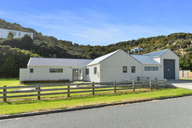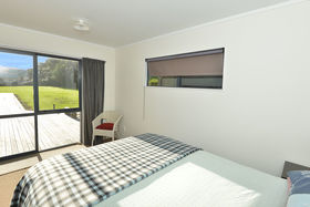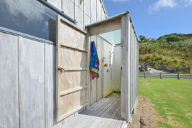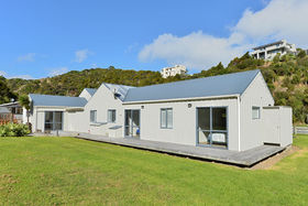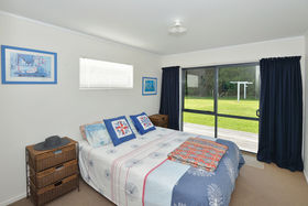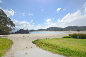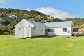 Nestled in a quiet cul-de-sac within view of the water and only 100 m to the beautiful white sand beach of Whangaumu Bay this eight bedroom beach house is hard to go past if you're wanting a prime holiday setup.