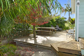 The Lockwood style home offers 3-bedroom, new bathroom and a fantastic new kitchen open plan with the dining and lounge area, one amazing kitchen feature is the built-in fridge/freezer kitchen draw. Access is provided from the living area and all bedrooms to the partly covered North East facing deck that extends around the house, great for entertaining the family and friends in privacy.