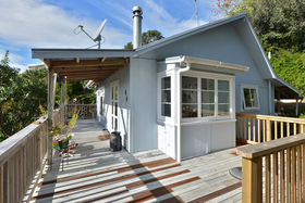 A rare find in the seaside village of Ngunguru is this quaint little home nestled on a large 3,807 sqm section overlooking a wetland valley and bush clad hills. The home consists of one double bedroom with mezzanine storage or another bedroom, beautiful tiled bathroom, open plan kitchen/dining/lounge flowing out to expansive decking for relaxing and entertaining. A bonus is a near new 10 sqm cottage complete with power, decks and verandah roof, currently used as a double bedroom or could be your work space.