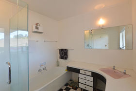 With simple clean lines and large windows in the three double bedrooms, it was angled for maximum sun. The bathroom has a bath and separate shower, and the kitchen is a spacious galley design.