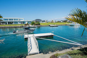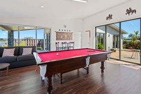 The spacious kitchen is central to the open plan dining, family and lounge areas which all flow out to the wraparound patios and decks that stretch the full length of the house then cascade down to the canal edge and out onto your very own jetty. Imagine your vessel moored at the bottom of your garden - you can be out on the water in the world class fishing grounds of Bream Bay or cruising on the harbour in minutes. Maybe take the jet ski or rubber duckie for a spin down the canal to the Marina for a coffee or meal at the restaurant or go for a kayak on the canals or harbour. The white sandy harbourside beach is also right there for those who enjoy relaxing and swimming at the beach. Many a gathering for friends and family have been held here where entertaining is a breeze with so many outdoor spaces to choose from - there's even a games room complete with pool table, bench and sink plus a two bedroom plus bathroom guest wing.