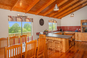 Surrounding decks with ramps around the house having access from all living areas supply great entertaining areas for those family gatherings and are wheelchair accessible.