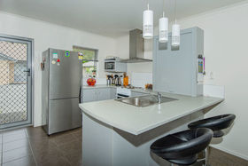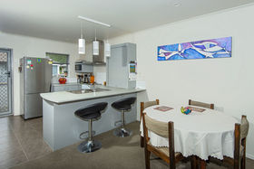 Easy open plan living- dining area, great roomy kitchen and breakfast bar all light filled and bright. Internal access to the single garage, fully alarmed for added security although seldom needed within this friendly community minded street.