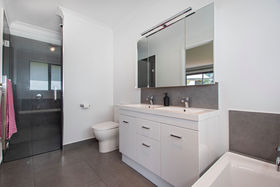 This nearly new home features five large bedrooms, an office, three bathrooms (including two ensuites), and a separate powder room. All bedrooms feature large wardrobes, including two walk-in wardrobes.